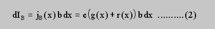 where IB(x) denotes the leakage current flowing in a sample area with length dx and width b from the n- to the p- layers and e is the elementary charge. This local ansatz does not only take into account the local dependence of the recombination rate r(x) but also allows the optical generation rate g(x) to be choosen inhomogeneously.
