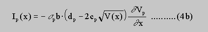 If a voltage drop in the n-layer occurs, the local leakage current IB (Eq.2) will not be zero, and a net leakage current flowing from the n-layer to the p-layers near the positive contact and a net leakage current from the p-layers to the n-layer near the negative contact will appear. This means that the current selectively supplied into the n-layer at the positive contact is more and more distributed to the p-layers and then, near the negative contact, redistributed to the n-layer again. Therefore in general the lateral current in the n-layer will not be constant (In not equal I) but is varying with the lateral coordinate x, denoted by In(x). Consequently an additional p-current Ip(x) will flow in the p-layers, and analogous to Eq. 4a one gets